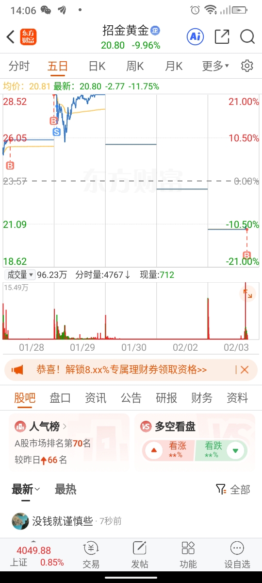 $招金黄金(SZ000506)$ 哈哈补仓啦。感谢神。