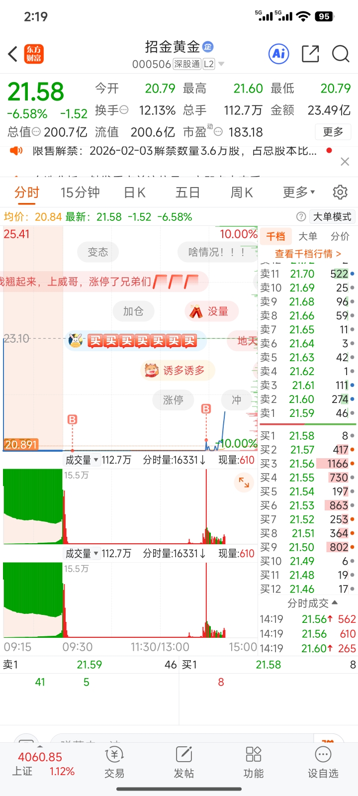 $招金黄金(SZ000506)$ 嗨,来吧