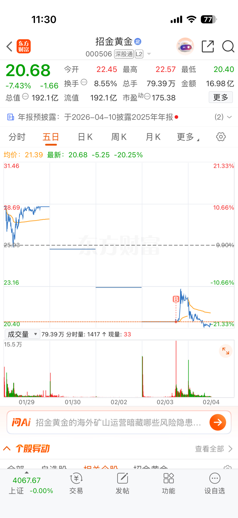 $招金黄金(SZ000506)$ 唉,说什么黄金大涨什么的,草都是托,开盘没卖现在一看亏钱