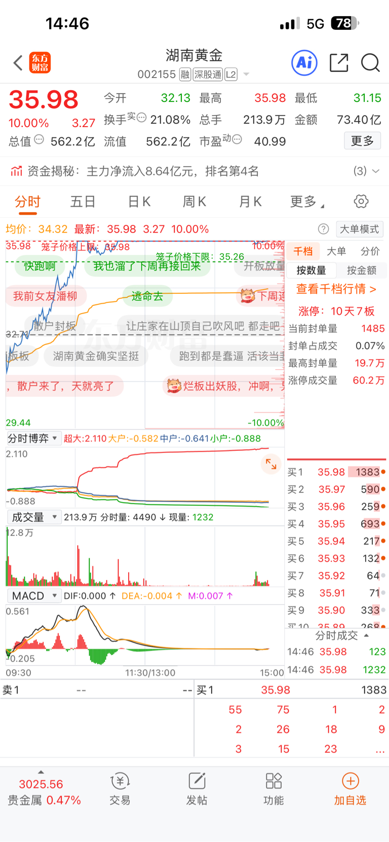 海湖南黄金这轮大回调基本没有回调反而上涨,如果后续补跌整个板块都得玩完,今天一直