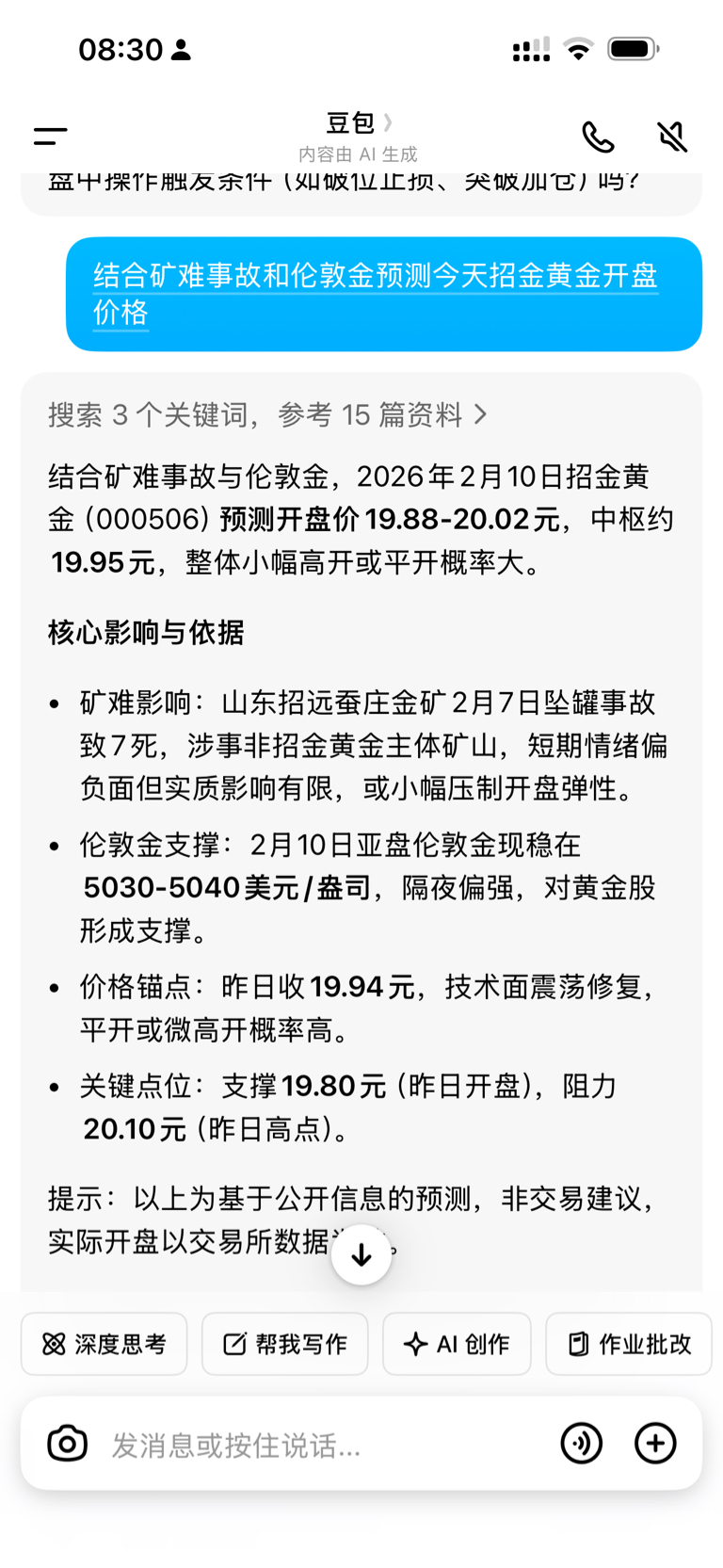 $招金黄金(SZ000506)$ 我的豆包一直挺靠谱的,不知道今天准不准