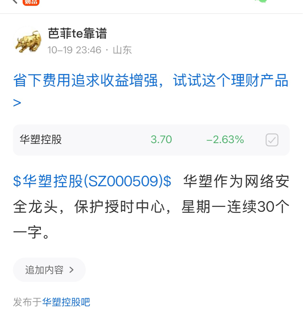 郑重声明:用户在财富号/股吧/博客等社区发表的所有信息(包括但不限于文字、视频、音频、数据及图表)仅代表个人观点,与本网站立场无关,不对您构成任何投资建议,据此操作风险自担。请勿相信代客理财、免费荐股和炒股培训等宣传内容,远离非法证券活动。请勿添加发言用户的手机号码、公众号、微博、微信及QQ等信息,谨防上当受骗!