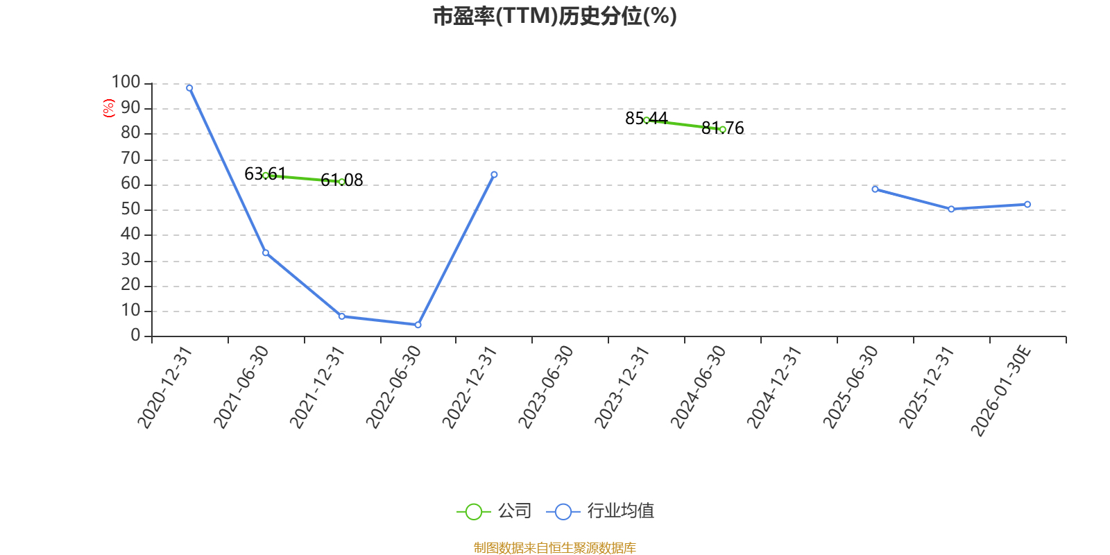 市盈率、市净率为负时,不显示当期分位数,会导致折线图中断。