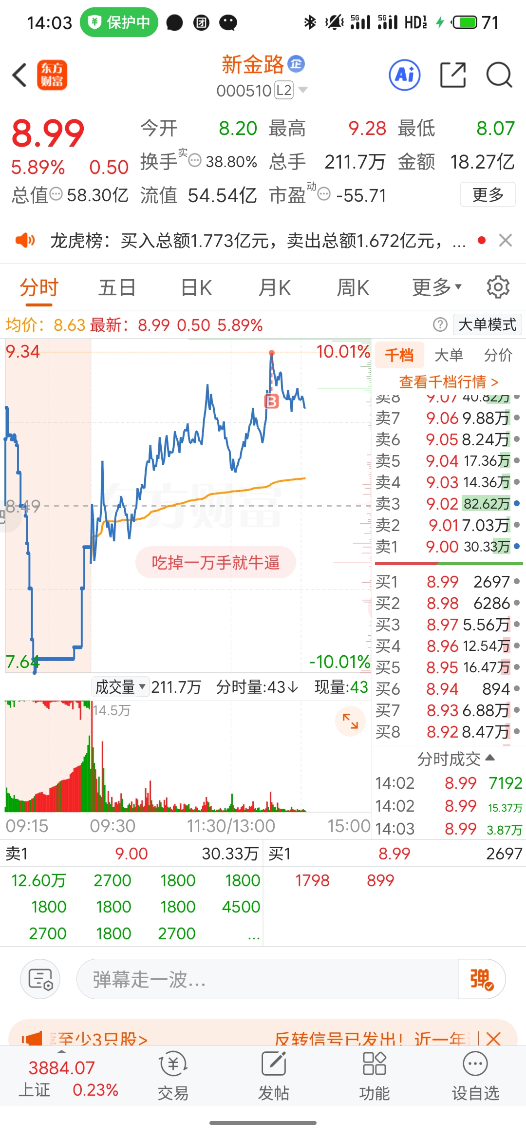 $新金路(SZ000510)$ 对不起,我买了一手