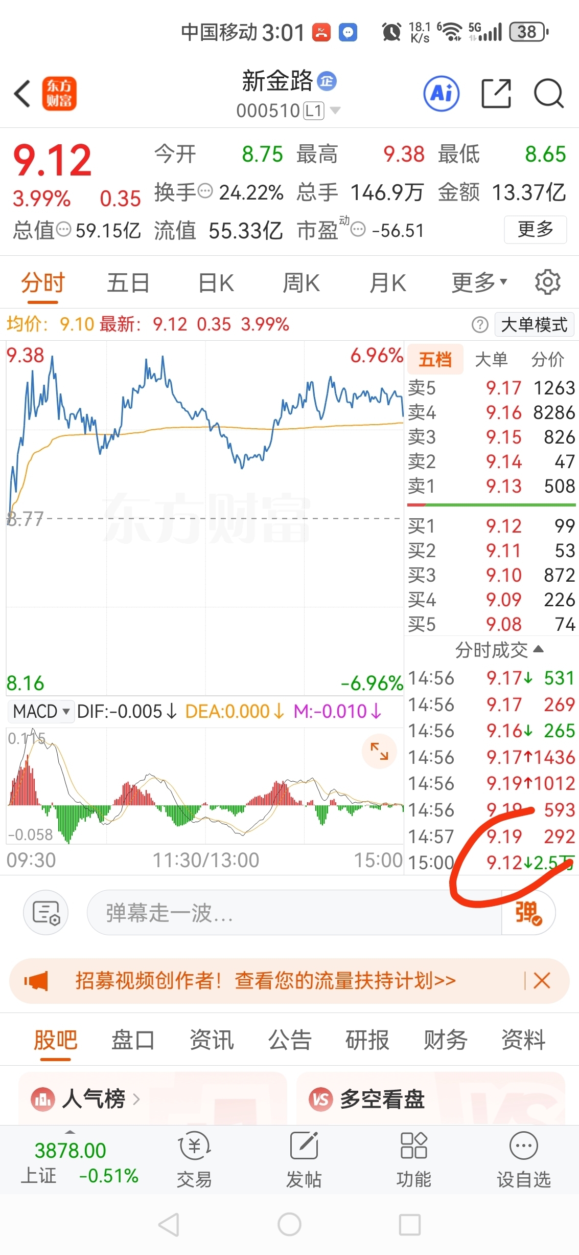 $新金路(SZ000510)$ 真的牛啊,集合竞价砸下来一个点。