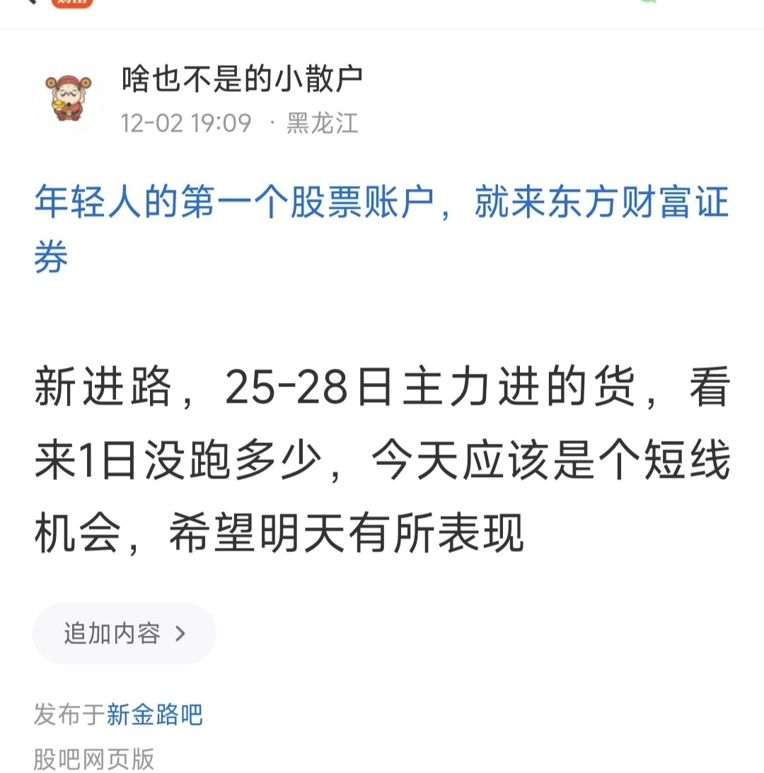 温馨提示: 1.根据《证券法》规定,禁止编造、传播虚假信息或者误导性信息,扰乱证券市场;2.用户在本社区发表的所有资料、言论等仅代表个人观点,与本网站立场无关,不对您构成任何投资建议。用户应基于自己的独立判断,自行决定证券投资并承担相应风险。《东方财富社区管理规定》
