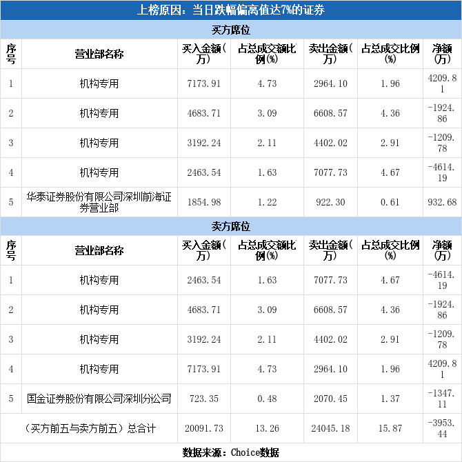 多主力现身龙虎榜,新金路下跌6.72%(12-08)