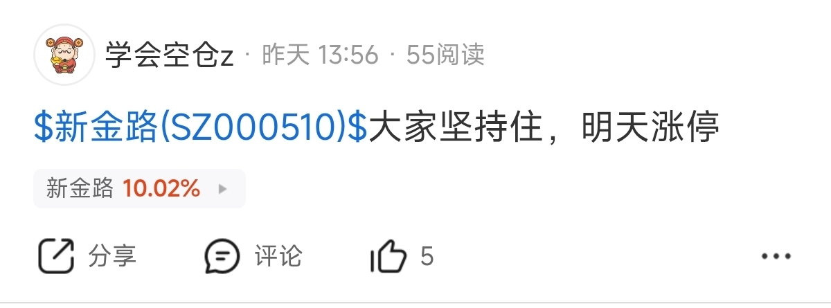 $新金路(SZ000510)$ 大家坚持住了吗