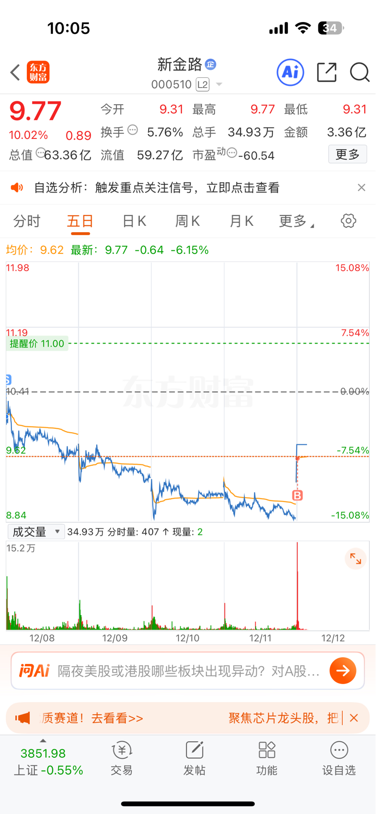 $新金路(SZ000510)$ 躲了好几天,我又满仓杀回来了