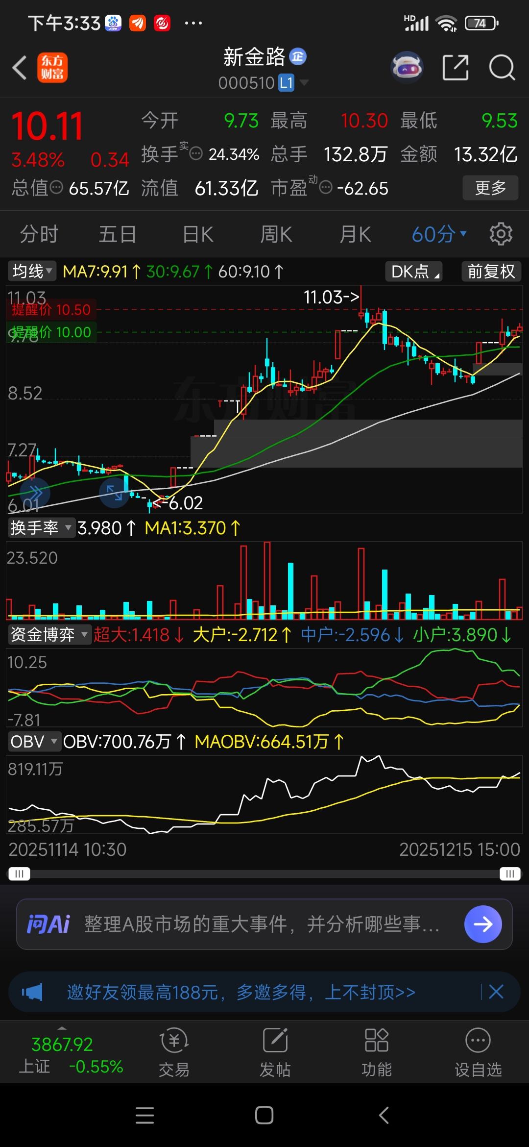 $新金路(SZ000510)$  10.01已买入,买者自负