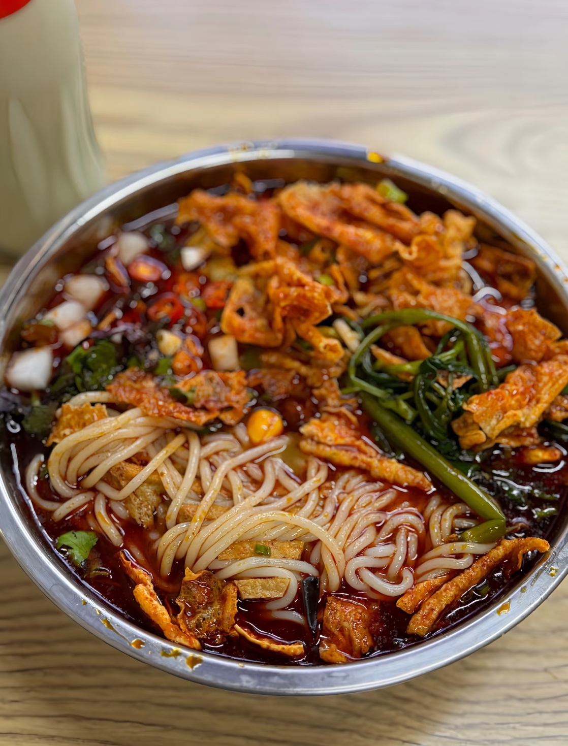 早上吃了一碗螺蛳粉,加了很多辣椒,味道还不错呢。