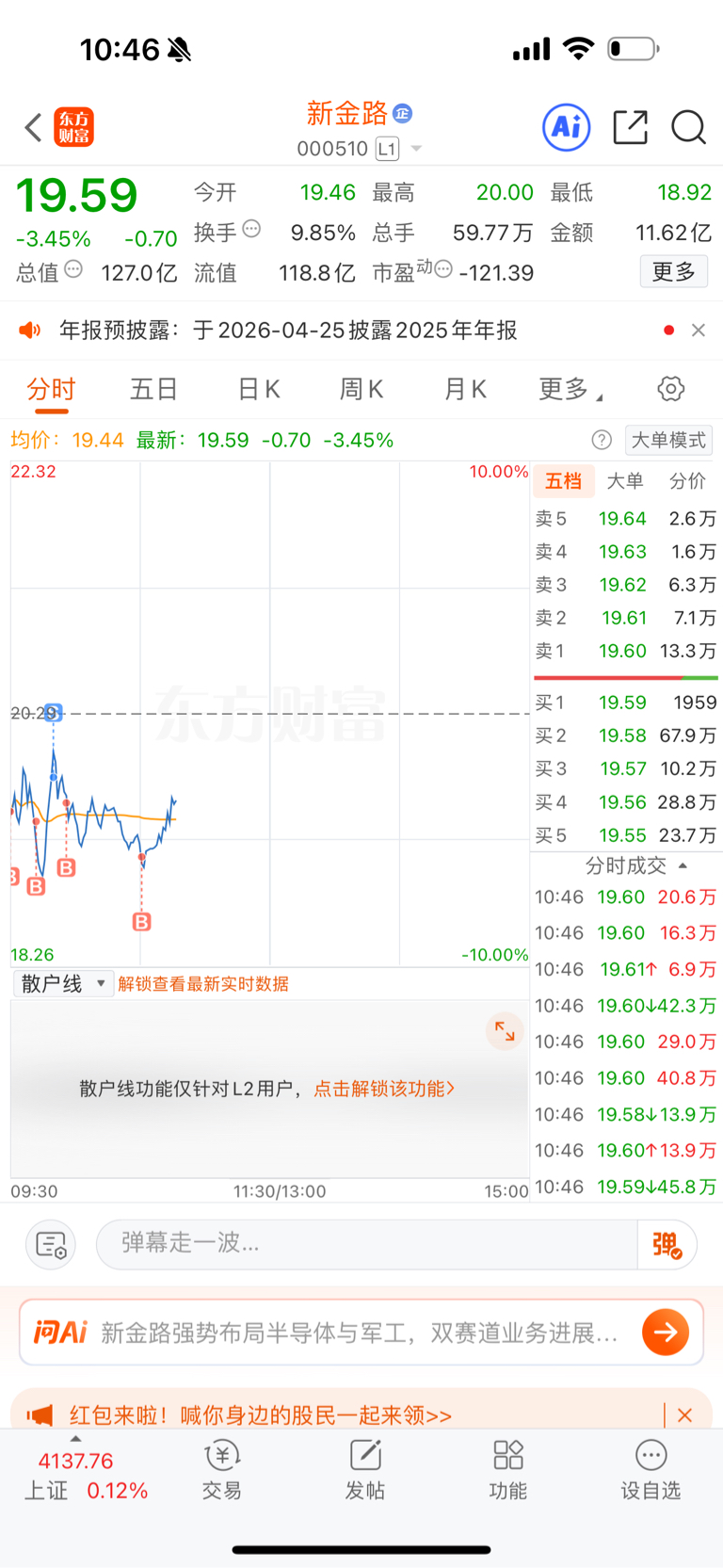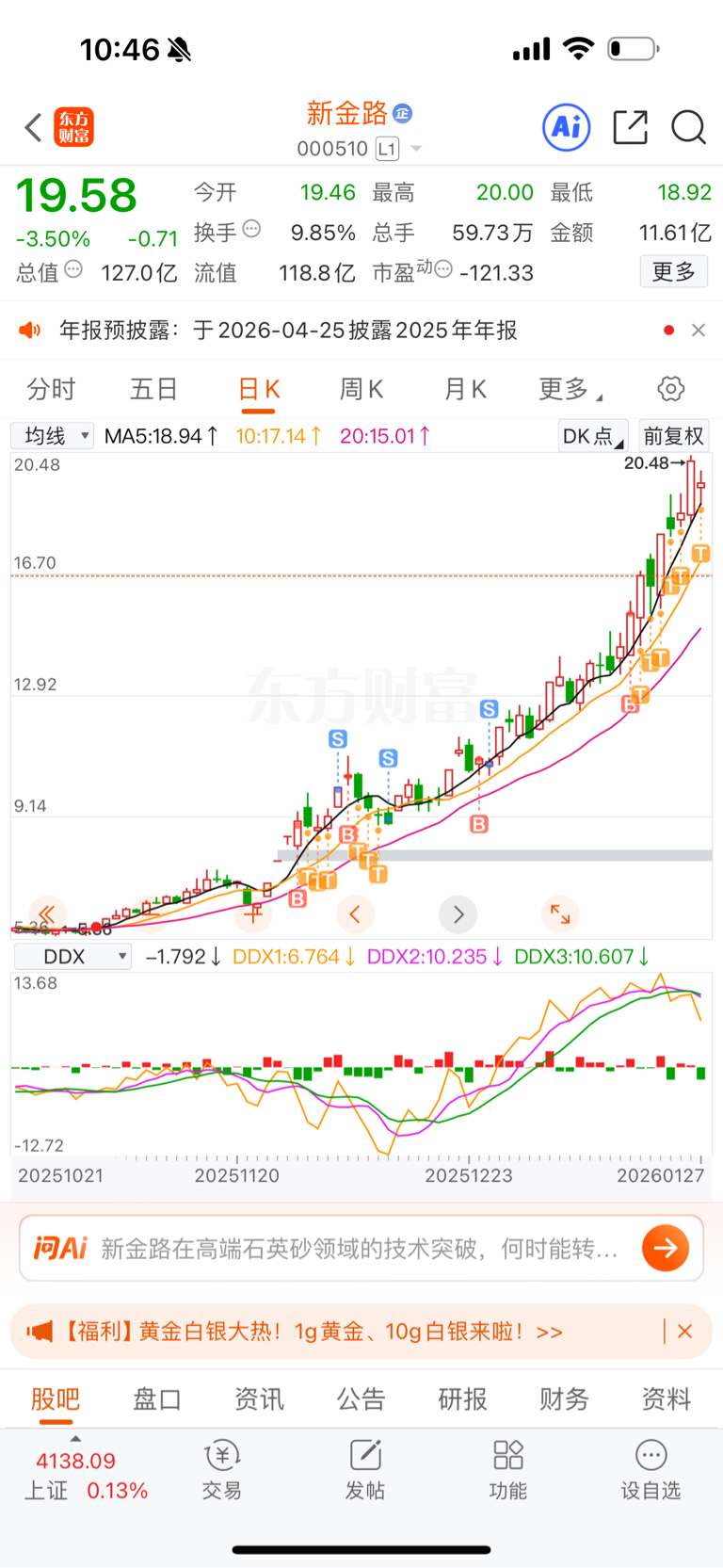 各位大佬不必害怕,新金路这个股目前非常强势的,涨这么多回调一点是正常的我加仓了,