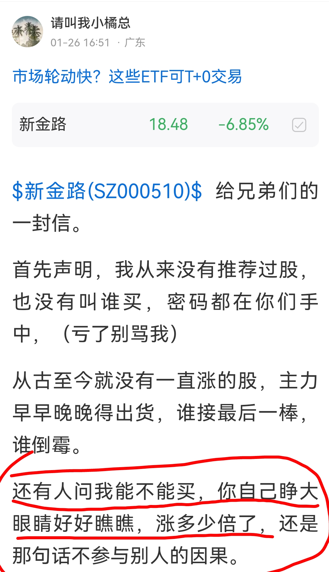 郑重声明:用户在财富号/股吧/博客等社区发表的所有信息(包括但不限于文字、视频、音频、数据及图表)仅代表个人观点,与本网站立场无关,不对您构成任何投资建议,据此操作风险自担。请勿相信代客理财、免费荐股和炒股培训等宣传内容,远离非法证券活动。请勿添加发言用户的手机号码、公众号、微博、微信及QQ等信息,谨防上当受骗!