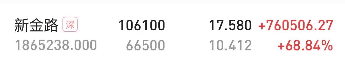 $新金路(SZ000510)$ 加了2万股,两个号12万股