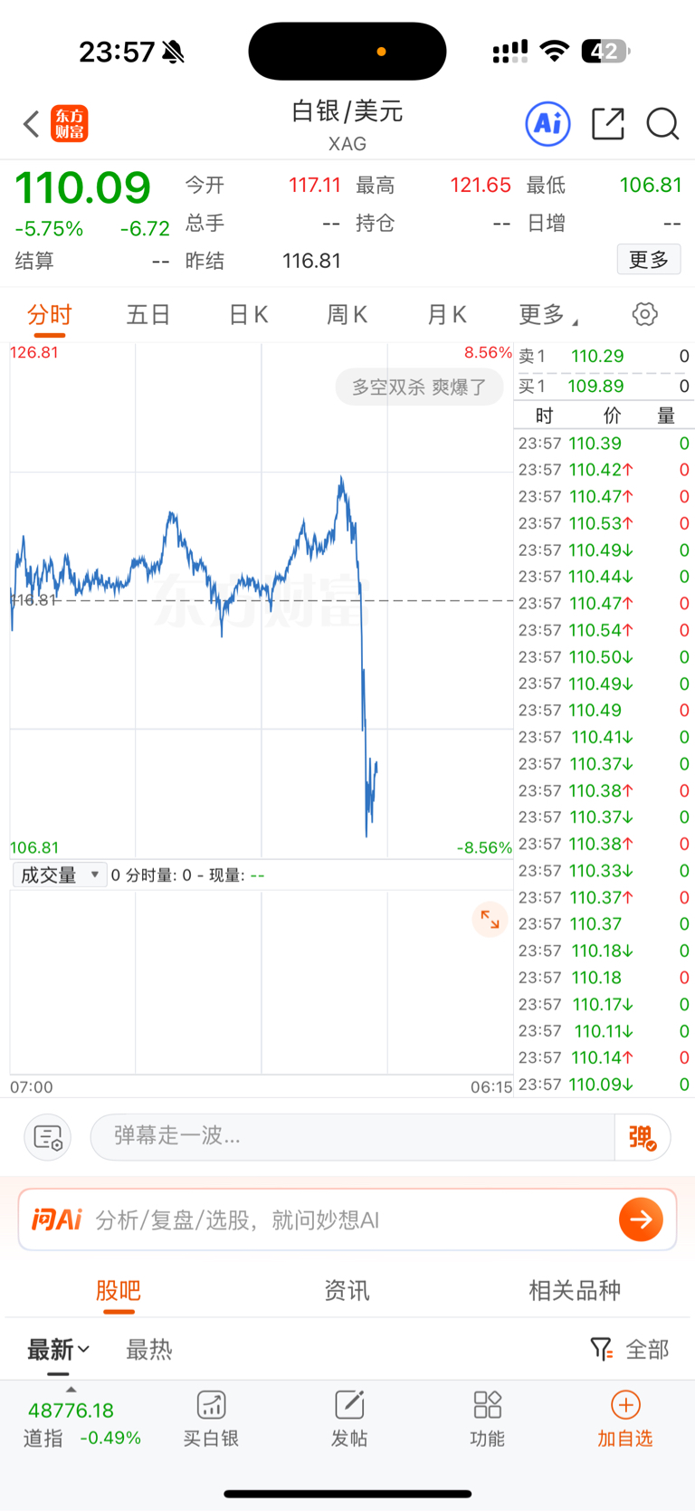 黄金,白银大跳水,明天这货也悬了,真想抽自己,抄底抄在半山腰