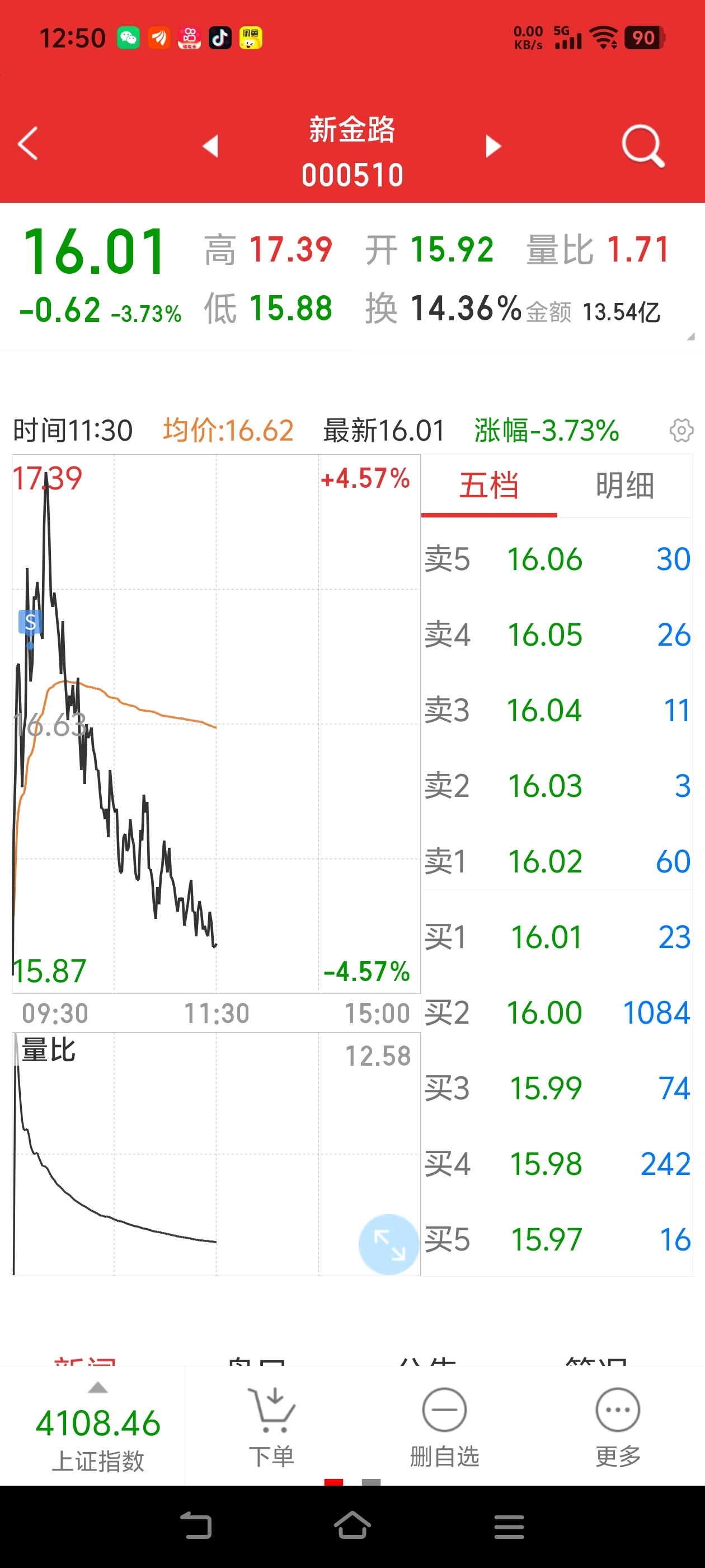 $新金路(SZ000510)$ 清仓了,到6块钱再回来炒底