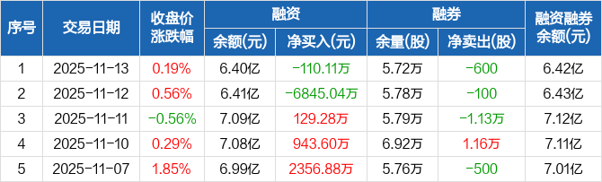 丽珠集团:融资净偿还110.11万元,融资余额6.4亿元(11-13)