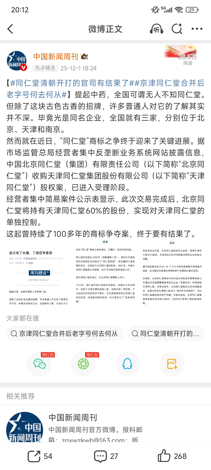 剩下40%天津同仁堂的股权,在丽珠集团手里。