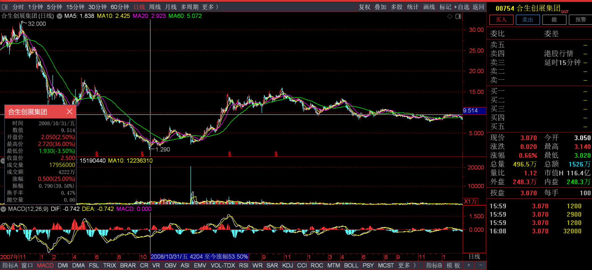 2008年3月21日闲庭信步从002053(当时名云南盐化)成功逃顶,保存了2006年开始专职炒股的第一个10倍。2008年10月闲庭信步成功抄底合生创展0754,至2010年重返A股时保存了第二个10倍