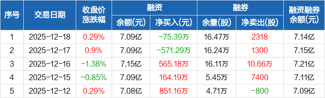 丽珠集团:融资净偿还75.39万元,融资余额7.09亿元(12-18)