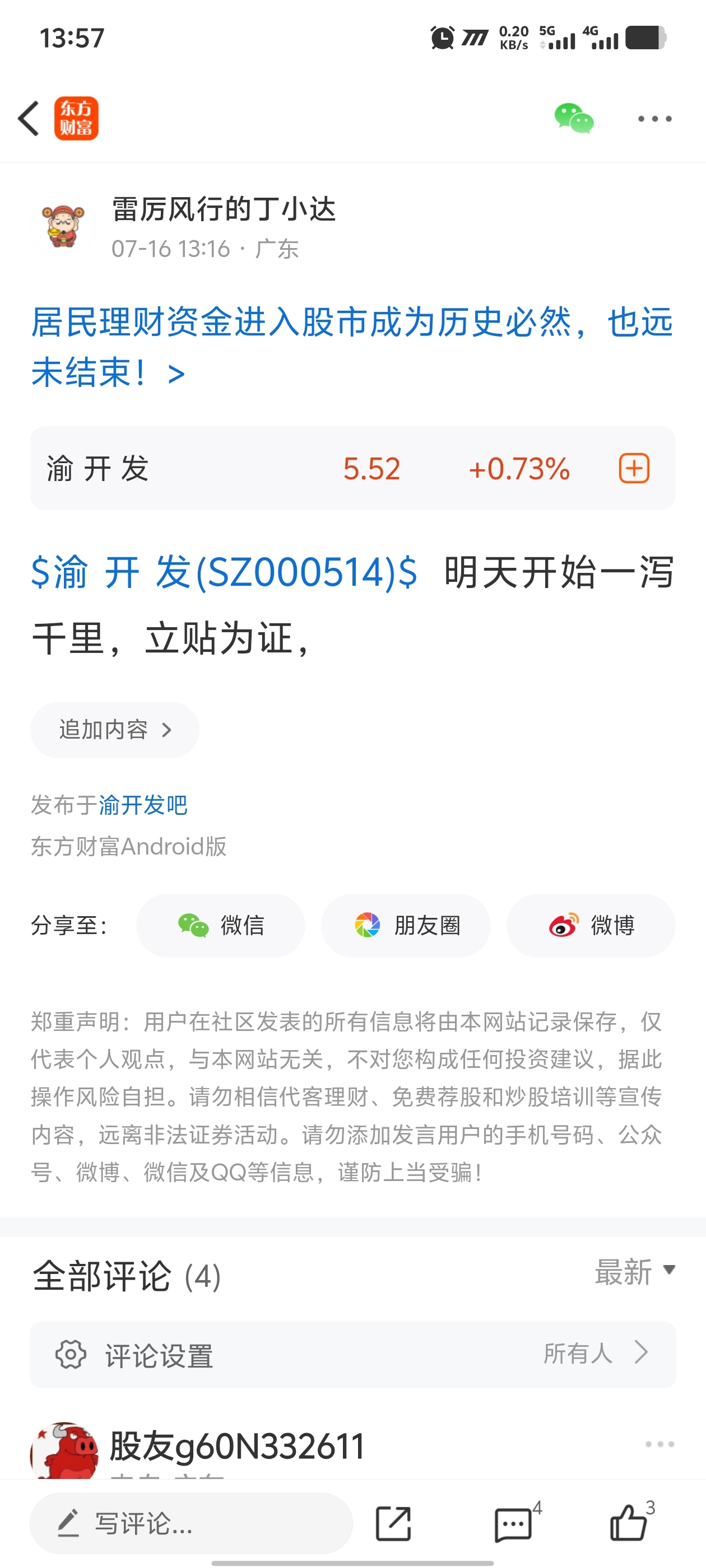 温馨提示: 1.根据《证券法》规定,禁止编造、传播虚假信息或者误导性信息,扰乱证券市场;2.用户在本社区发表的所有资料、言论等仅代表个人观点,与本网站立场无关,不对您构成任何投资建议。用户应基于自己的独立判断,自行决定证券投资并承担相应风险。《东方财富社区管理规定》