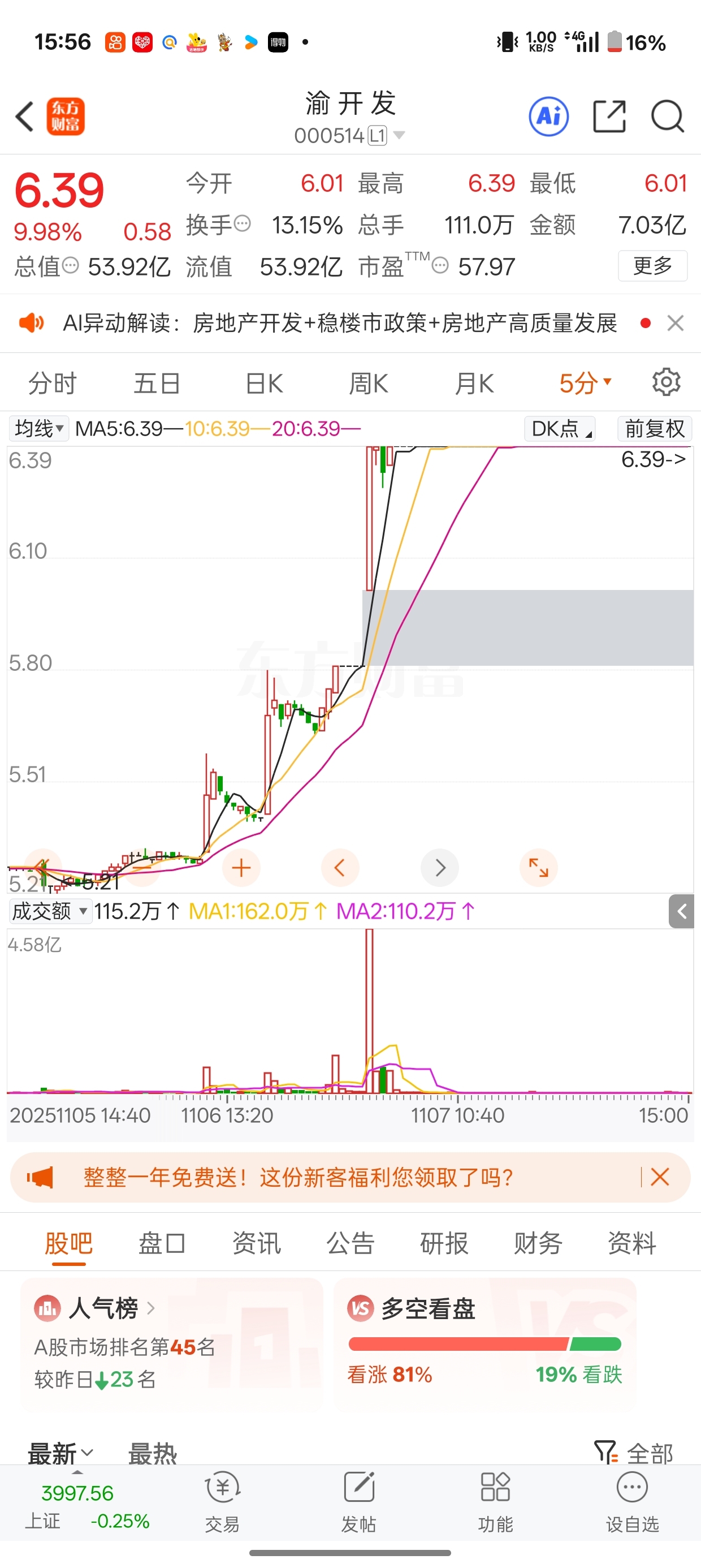 $渝 开 发(SZ000514)$ 分量图很漂亮