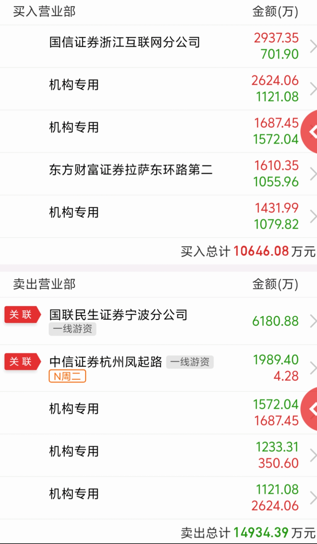 看榜吧,机构进了游资走了