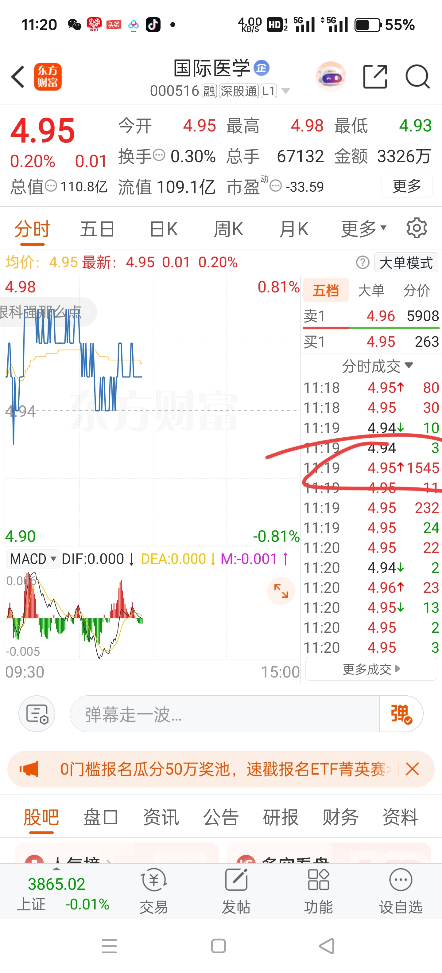 $国际医学(SZ000516)$ 主力大单在低吸带血的筹码