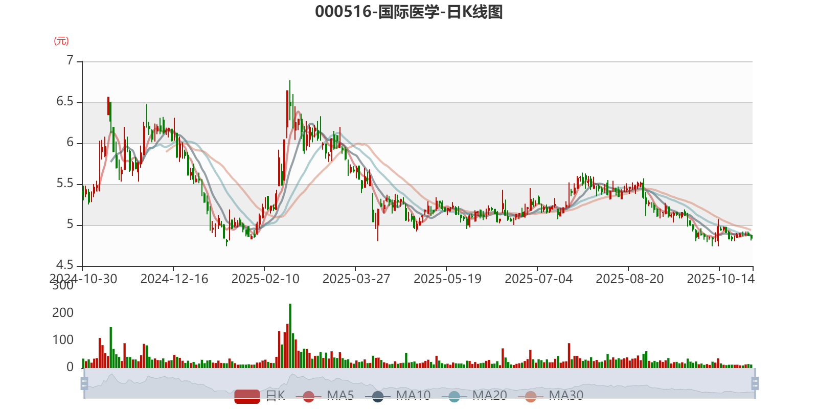 以10月29日收盘价计算,国际医学目前市盈率(TTM)约为-32.28倍,市净率(LF)约3.25倍,市销率(TTM)约2.58倍。
