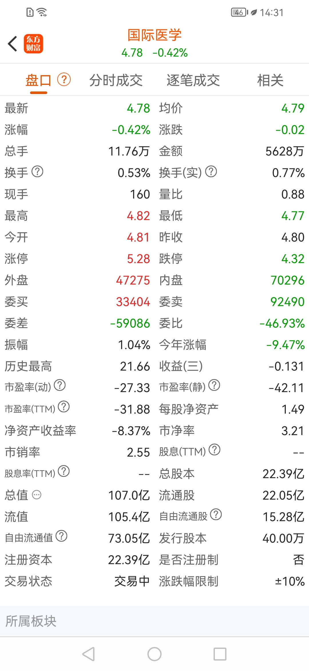 $国际医学(SZ000516)$ 委卖及内盘好强大啊