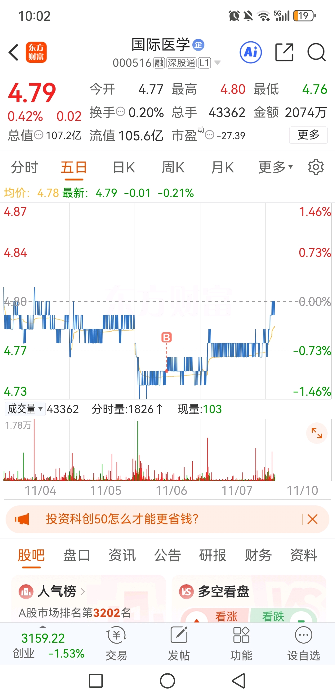 $国际医学(SZ000516)$ 已满仓了,看你的表现