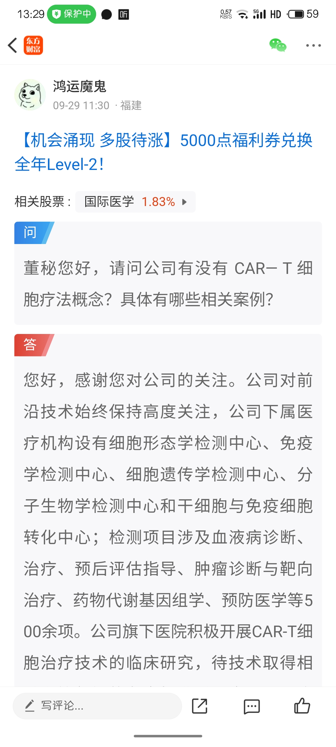 $国际医学(SZ000516)$ 看来就是干细胞,我还补充提交过国际医学CAR—T细胞疗法概念。