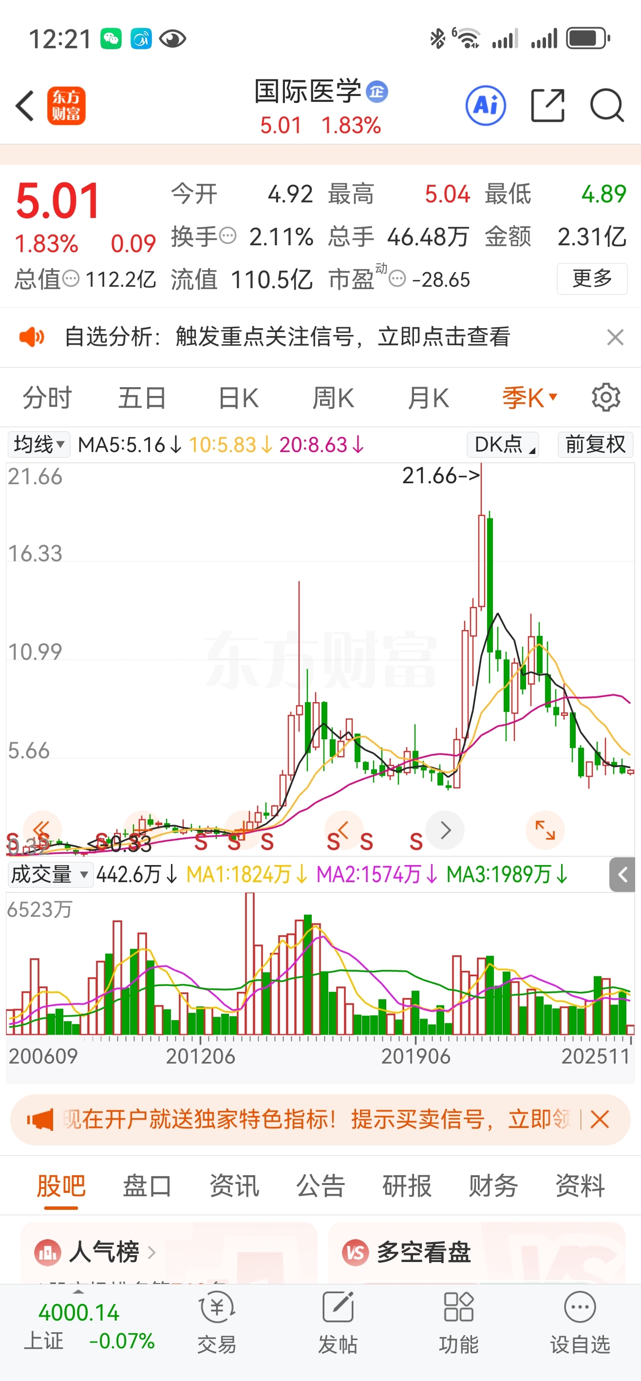$国际医学(SZ000516)$ 散户有个毛病,涨跌都要找原因!不用在意什么年报、不用关注质子开业时间……它更不会像一些人说的重组!这些杂毛信息只会干扰你的判断和决策!股票就是涨跌,涨多了就该跌;同样跌多了就该涨。易中天纪连海……代表的已经明显资金分化,没有板块效应了。而且明显有资金做高切低动作。有耐心的可以呆着看看,毕竟这几天这里明显有大哥在干活!说不定他带你吃块大肉呢!