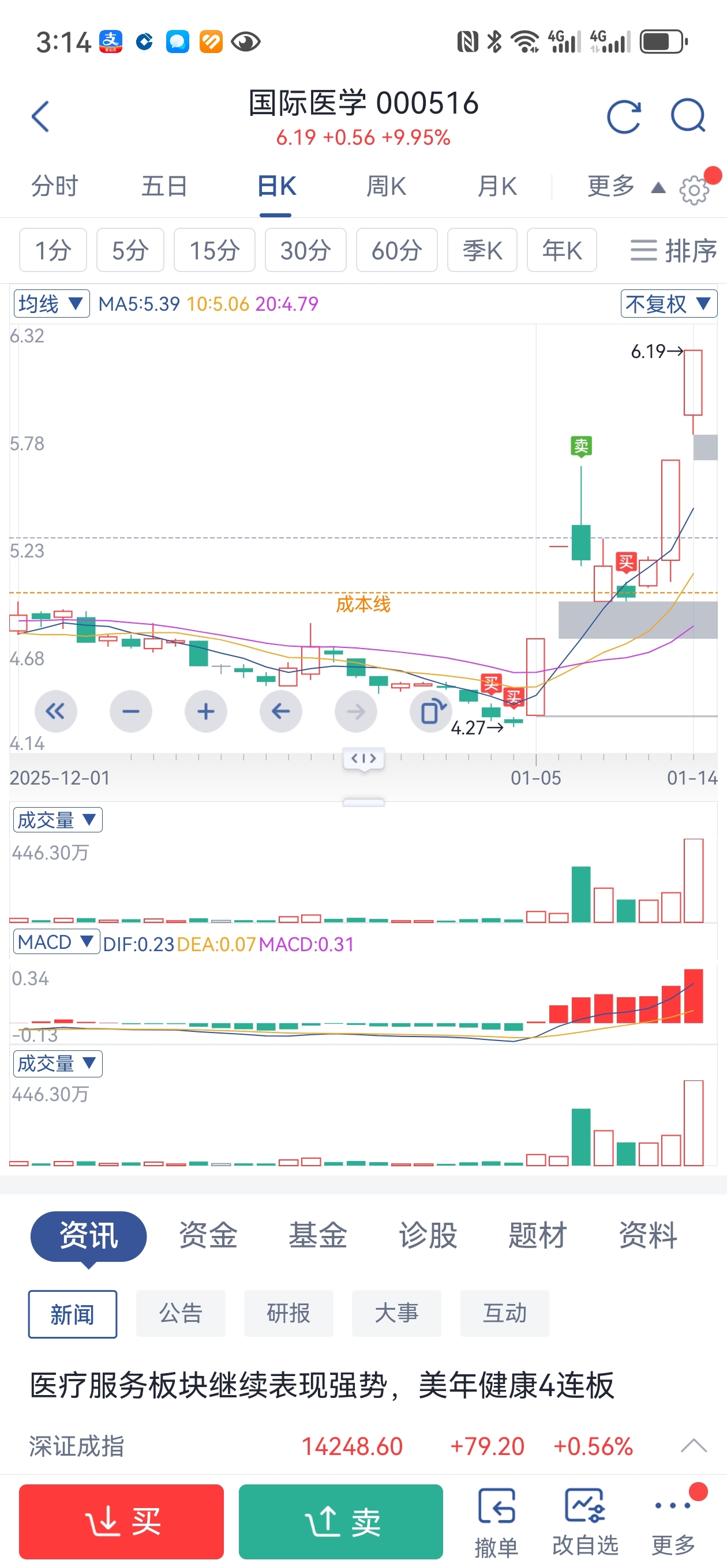 本想做个T,结果没时间盯盘又打板进去了