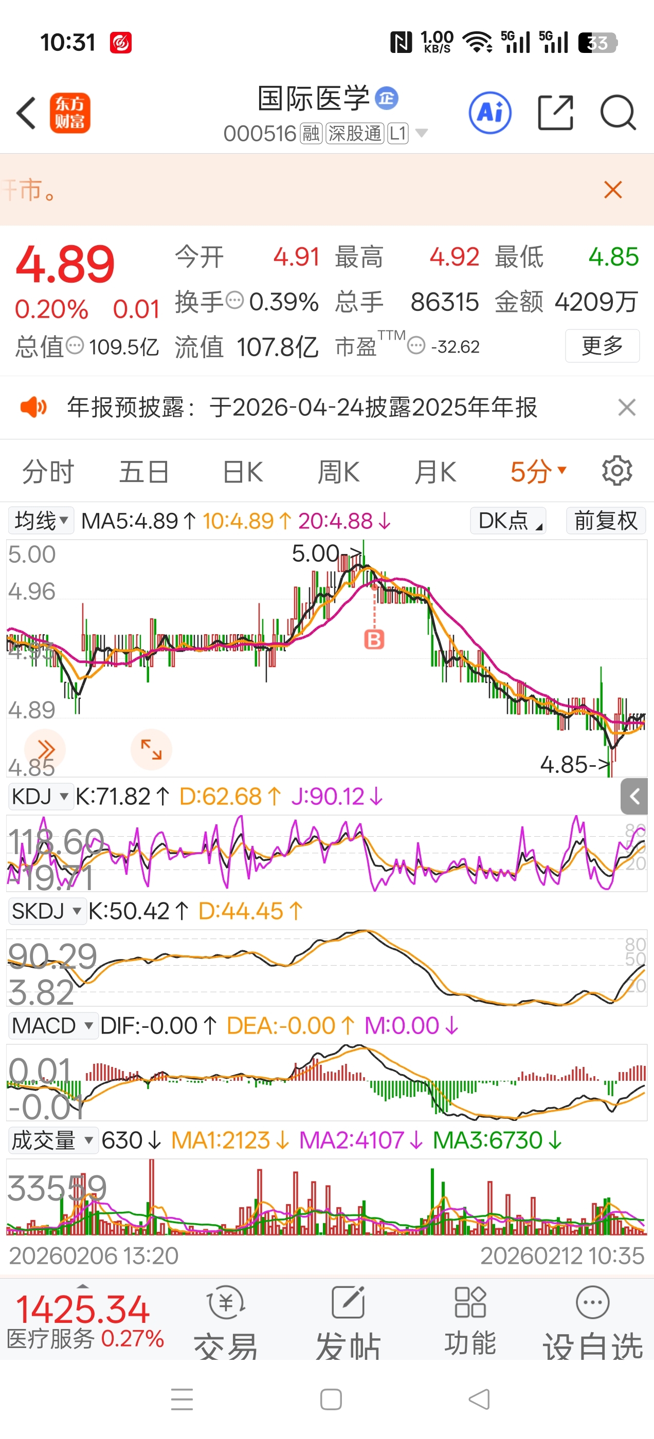 $国际医学(SZ000516)$ 正宗一买就跌!1000股
