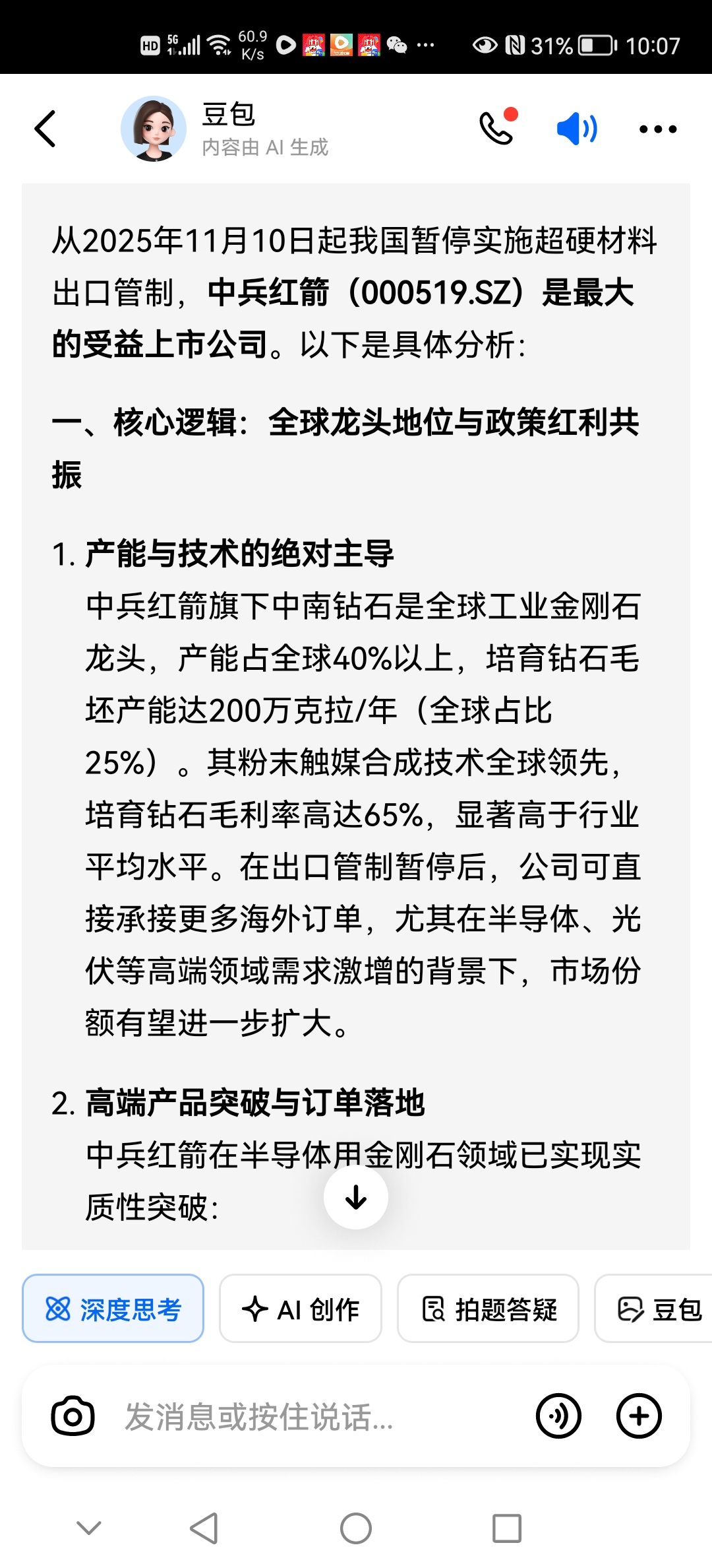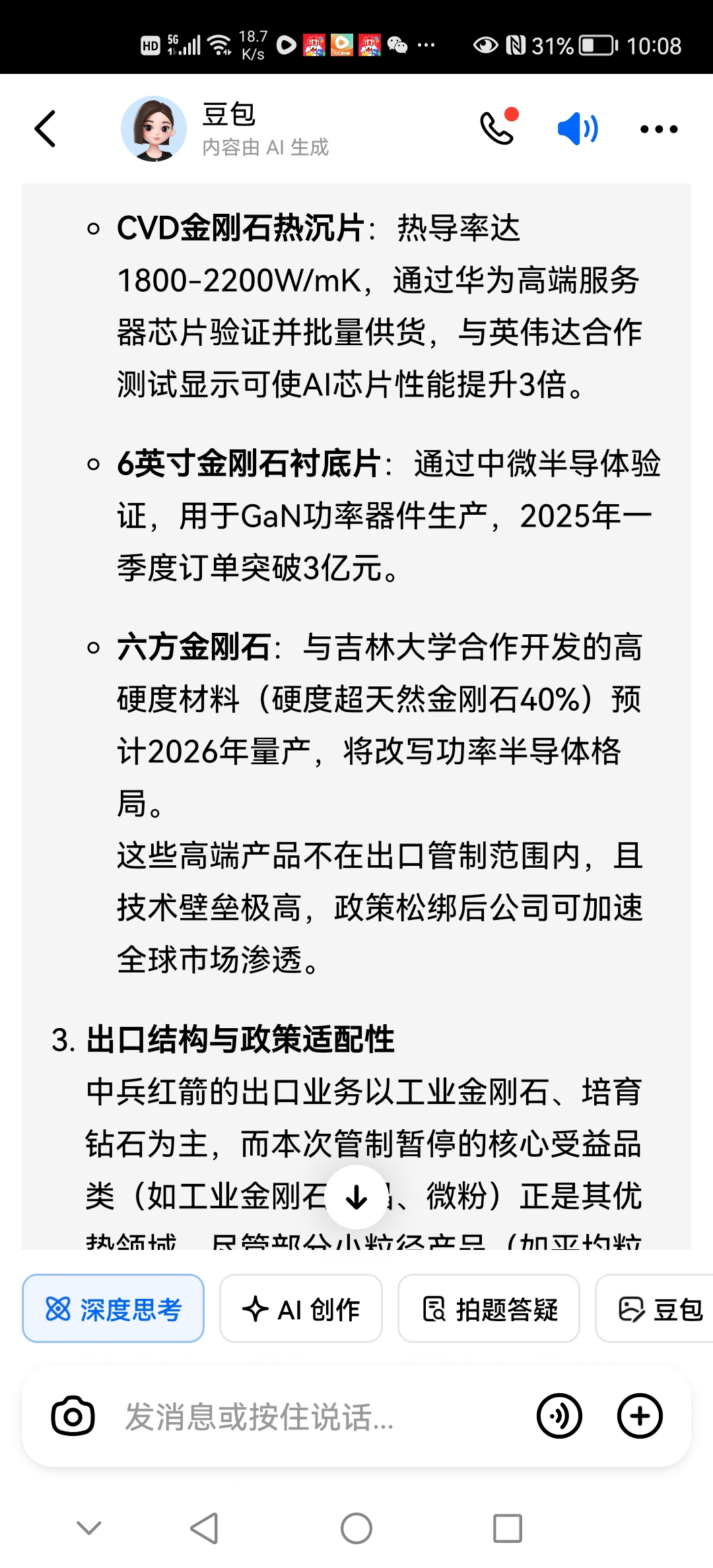 超硬材料暂停出口管制最大的受益公司就是中兵红箭