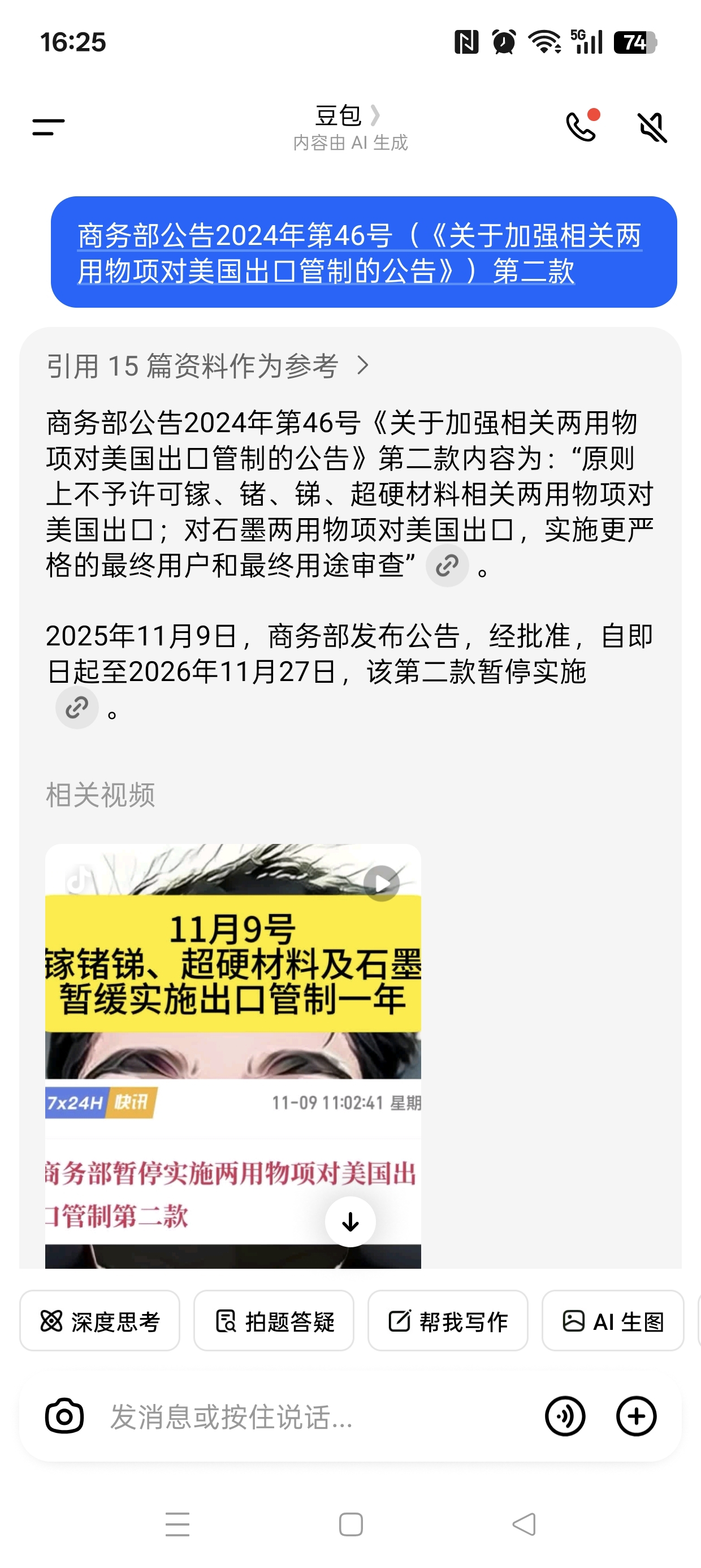 $中兵红箭(SZ000519)$ 中兵红箭子公司,是超硬材料龙头企业,独霸超硬材料40%产能。去年,商务部禁止超硬材料出口,直到今天解禁。期间,超硬材料价值将会得到提现,价格大涨!此次解禁,将促进贸易,对公司利润是大大的利好!