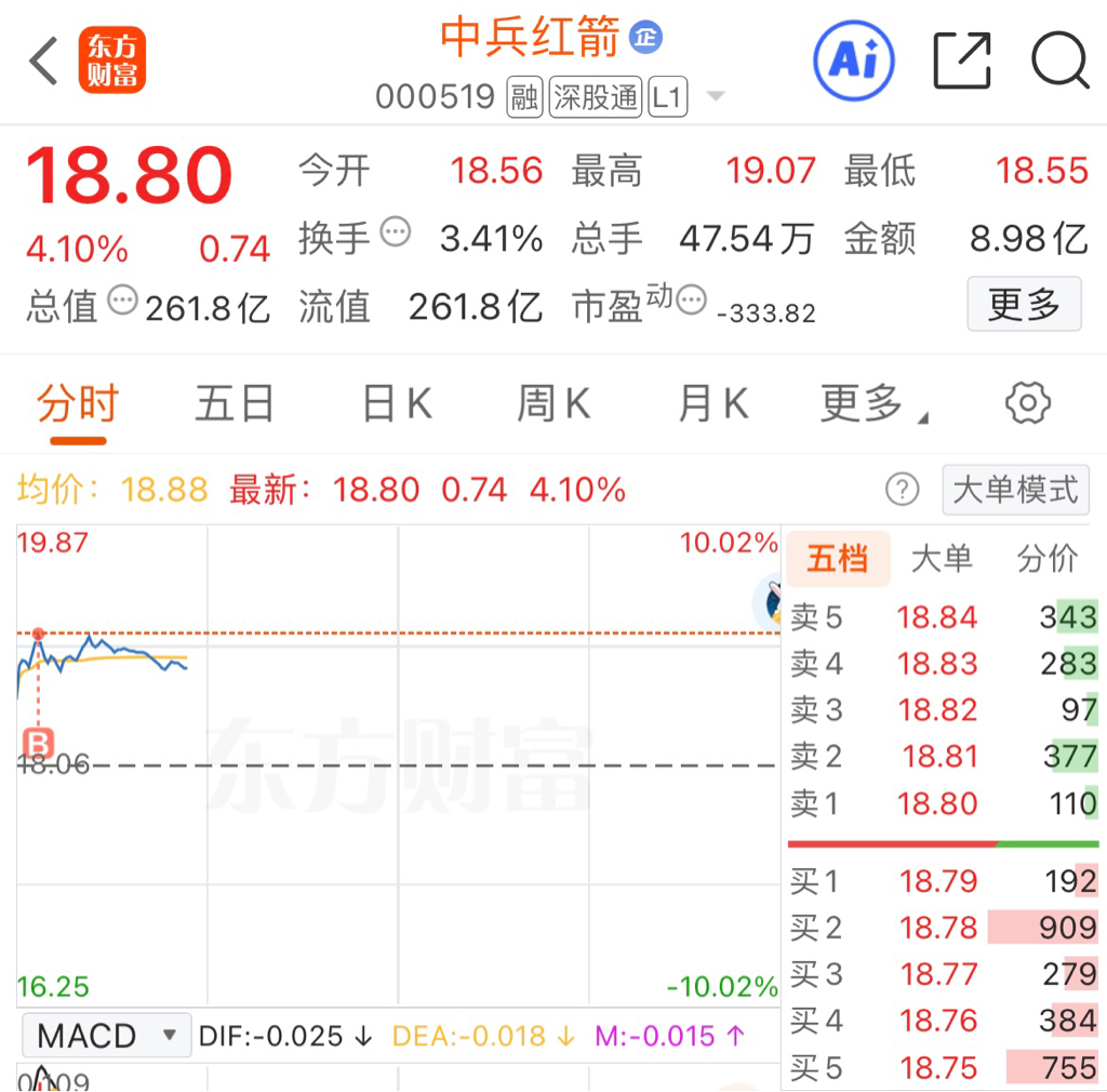 $中兵红箭(SZ000519)$ 一追又是山顶