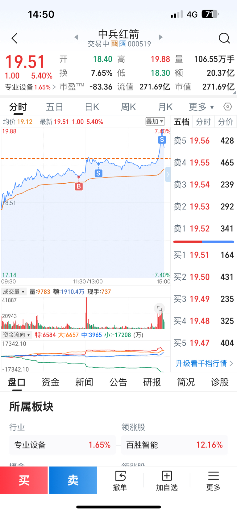 $中兵红箭(SZ000519)$ 套了好久,今天走了,拜拜