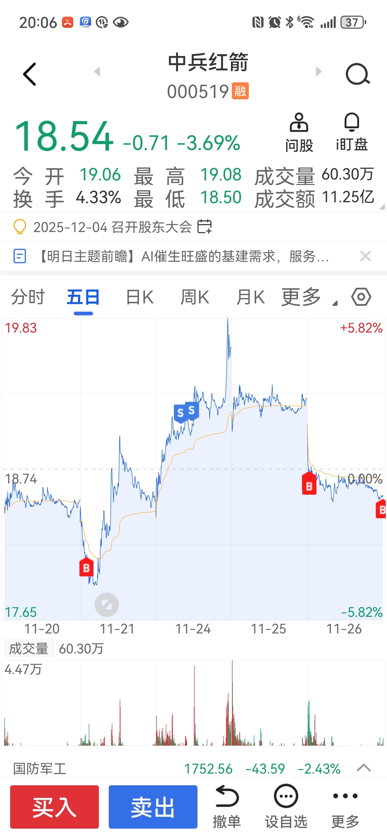 $中兵红箭(SZ000519)$ 不要想信红箭一下能飞上天,也不要想它不会再下铁。