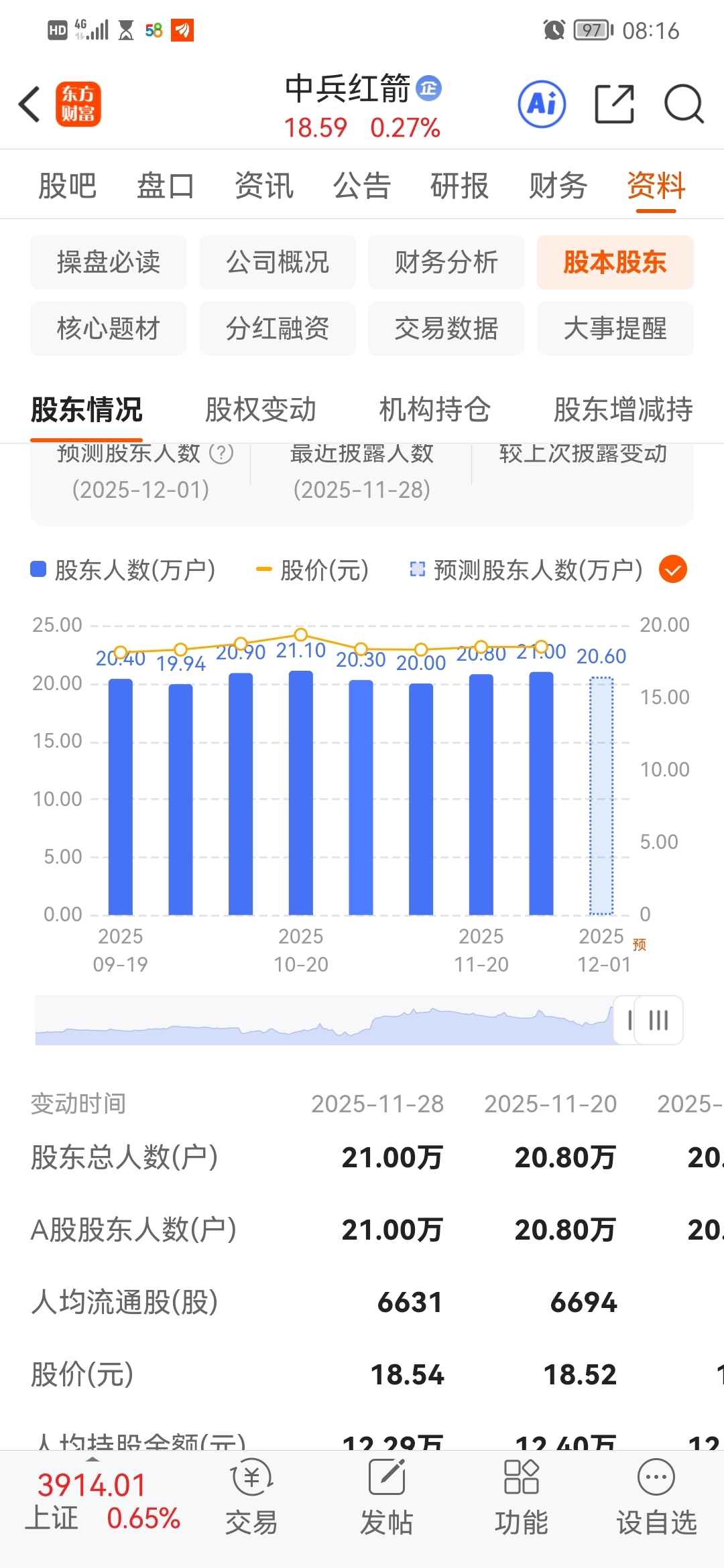 $中兵红箭(SZ000519)$ 散户昨天出了4千户