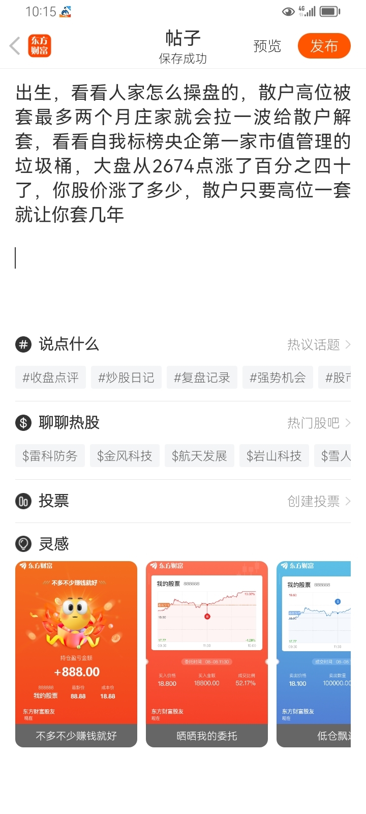 温馨提示: 1.根据《证券法》规定,禁止编造、传播虚假信息或者误导性信息,扰乱证券市场;2.用户在本社区发表的所有资料、言论等仅代表个人观点,与本网站立场无关,不对您构成任何投资建议。用户应基于自己的独立判断,自行决定证券投资并承担相应风险。《东方财富社区管理规定》