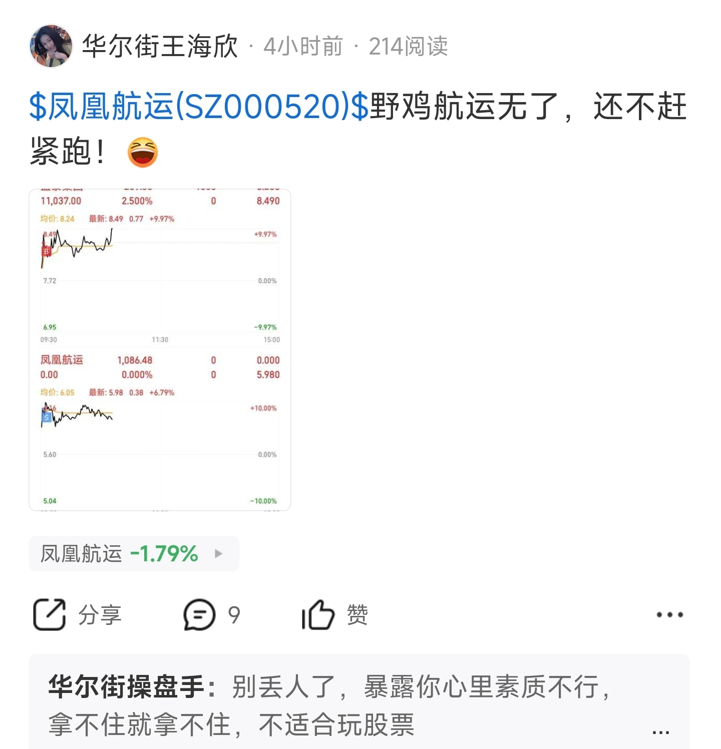郑重声明:用户在财富号/股吧/博客等社区发表的所有信息(包括但不限于文字、视频、音频、数据及图表)仅代表个人观点,与本网站立场无关,不对您构成任何投资建议,据此操作风险自担。请勿相信代客理财、免费荐股和炒股培训等宣传内容,远离非法证券活动。请勿添加发言用户的手机号码、公众号、微博、微信及QQ等信息,谨防上当受骗!