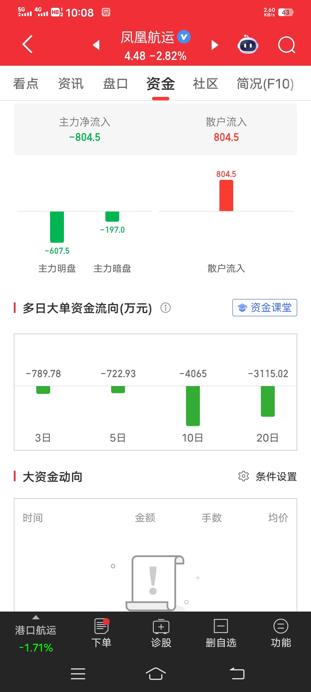 $凤凰航运(SZ000520)$ 主力一直跑路,暗盘也一直跑。