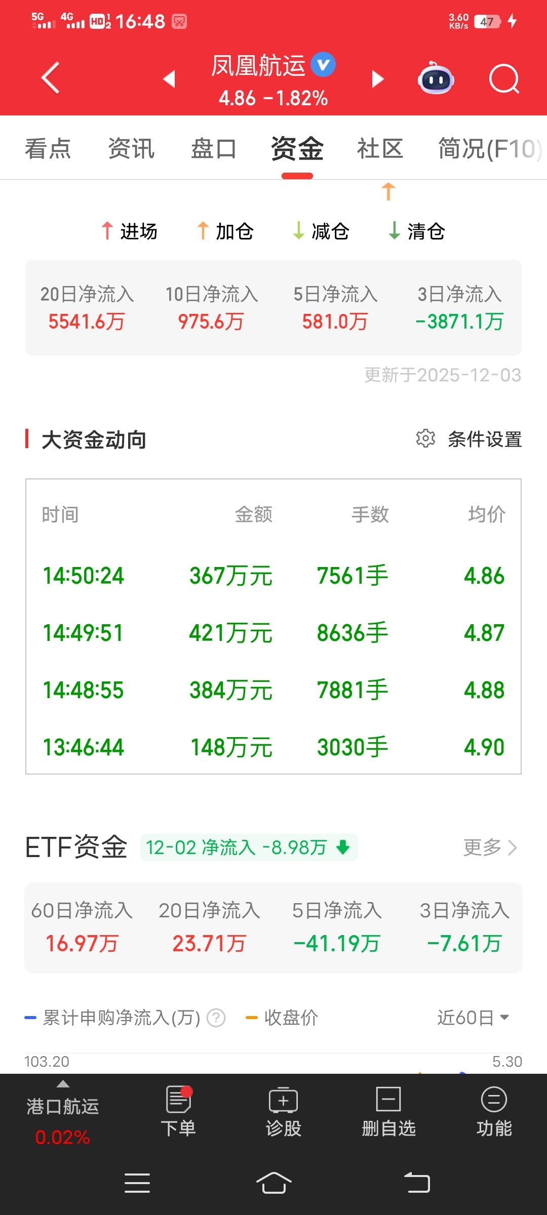 $凤凰航运(SZ000520)$ 主力大量的出货。明天又在水下游泳了,被套了二个点。