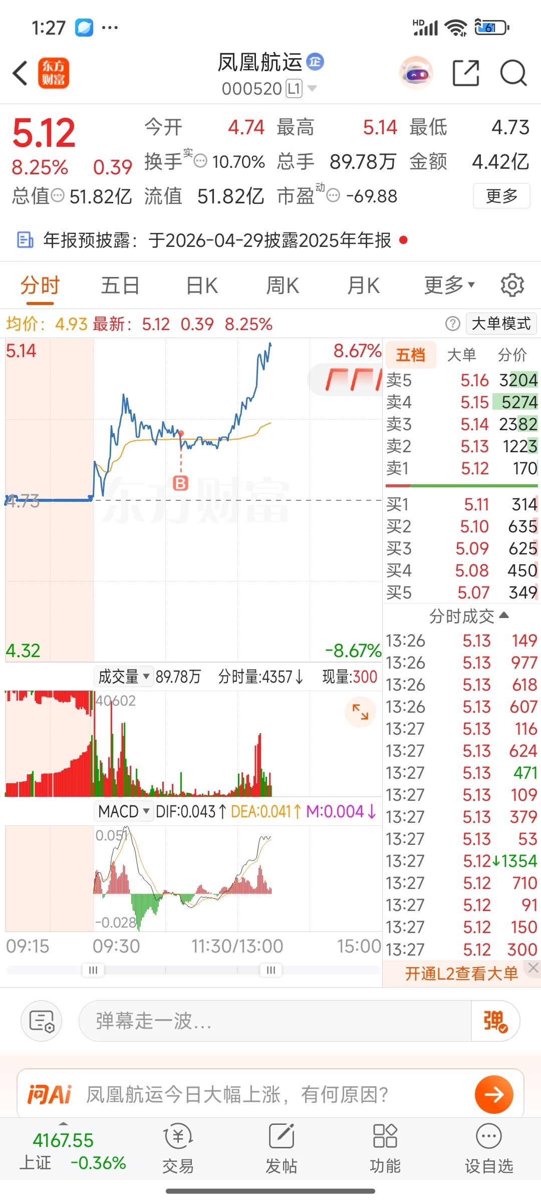 $凤凰航运(SZ000520)$ 老庄给个涨停让我吃点肉