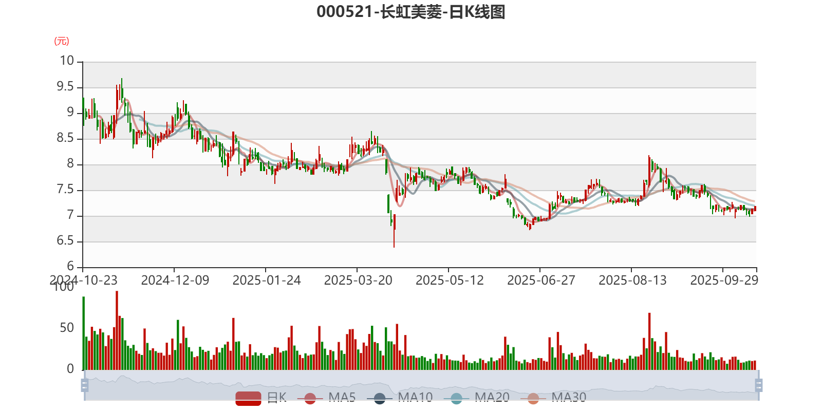 以10月22日收盘价计算,长虹美菱目前市盈率(TTM)约为11.28倍,市净率(LF)约1.19倍,市销率(TTM)约0.24倍。