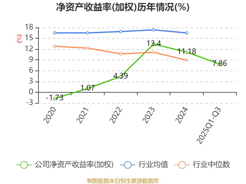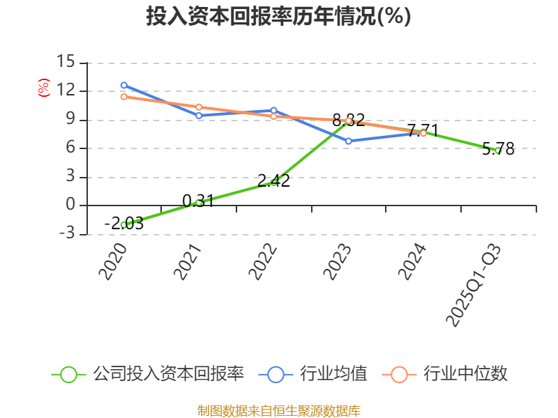 盈利能力方面, 2025年前三季度公司加权平均净资产收益率为7.86%,同比下降1.03个百分点。公司2025年前三季度投入资本回报率为5.78%,较上年同期上升0.17个百分点。