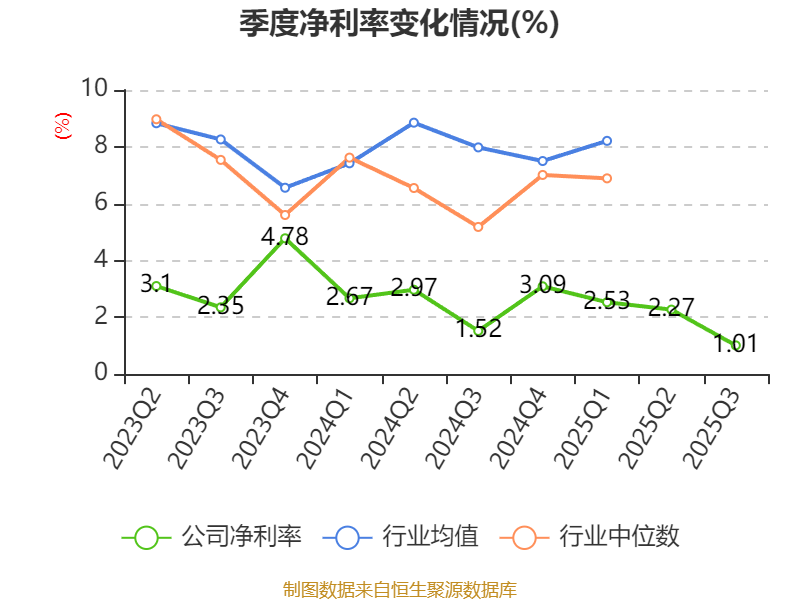 2025年前三季度,公司流动比率为1.05,速动比率为0.94。