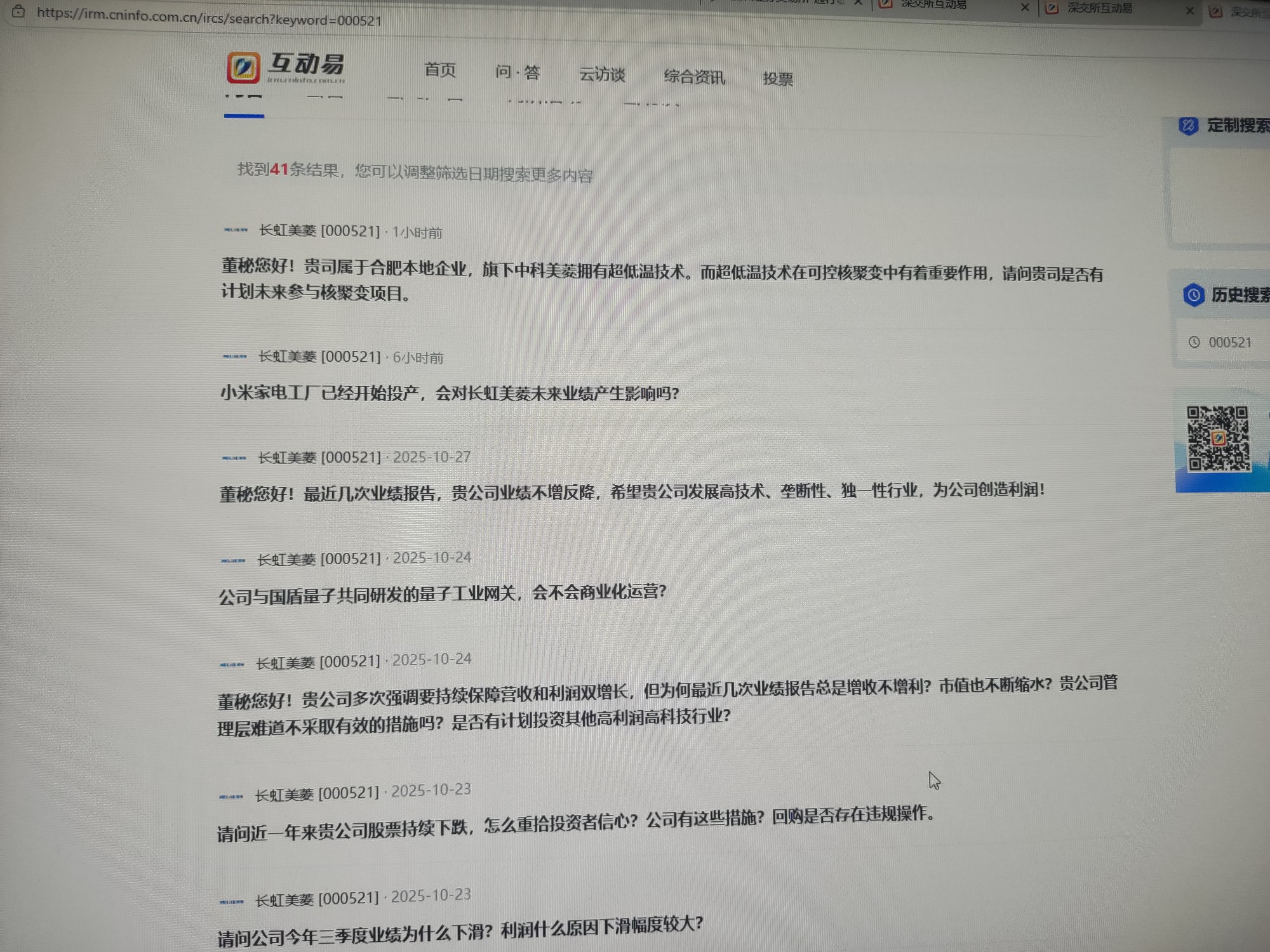 $长虹美菱(SZ000521)$ 董秘连投资者问题都不回答。证明什么呢。